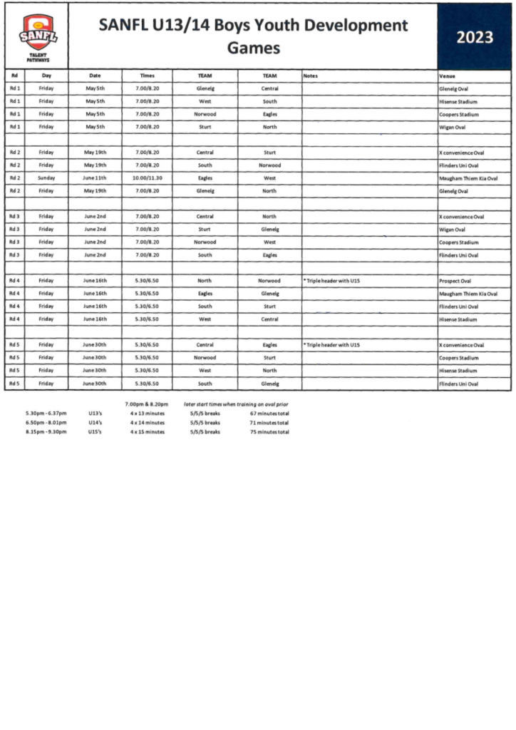 Unley Oval Training Schedule