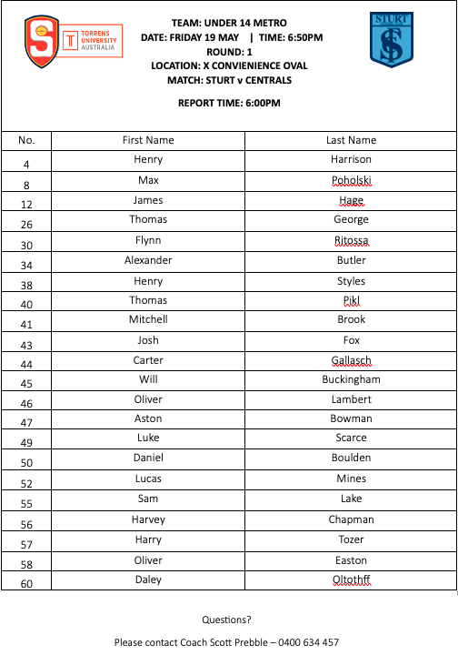 U14 Match availability