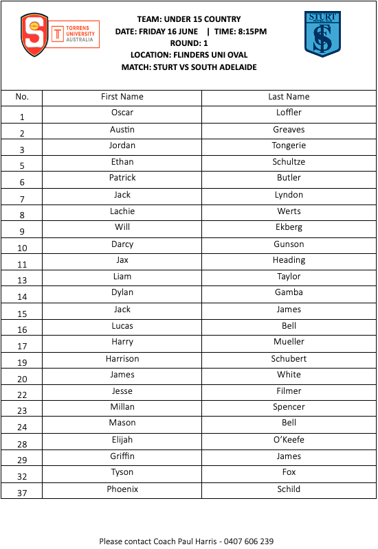 U15 BOYS SQUADS