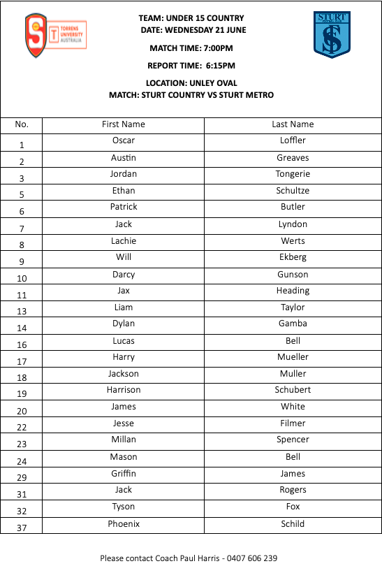 • U15 BOYS SQUADS