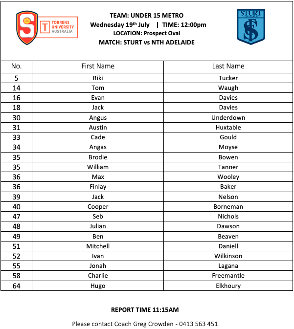 U15 BOYS SQUADS