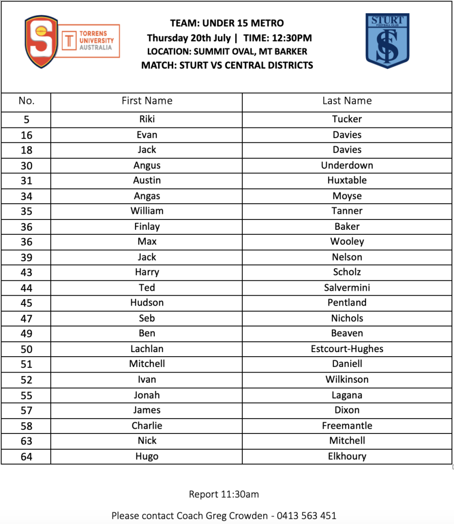 U15 BOYS SQUADS