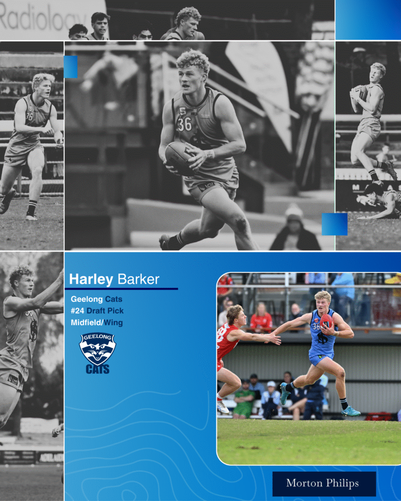 With the 24th pick in the 2025 Telstra AFL Draft, Sturt is proud to see our exciting young midfielder Harley Barker selected by Geelong.