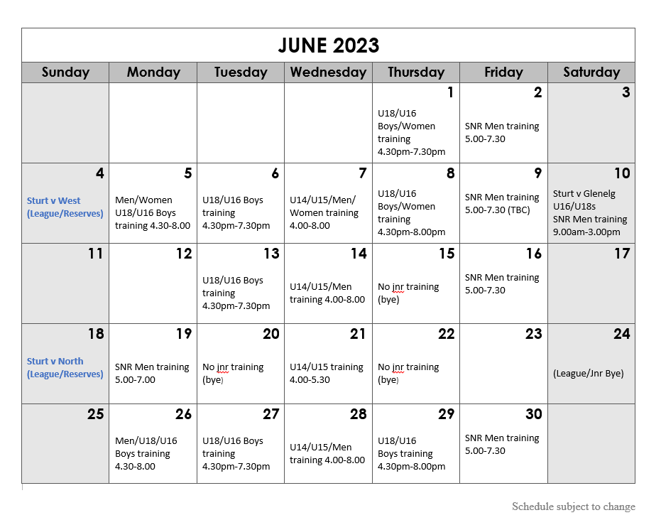 Unley Oval Schedule June 2 2023