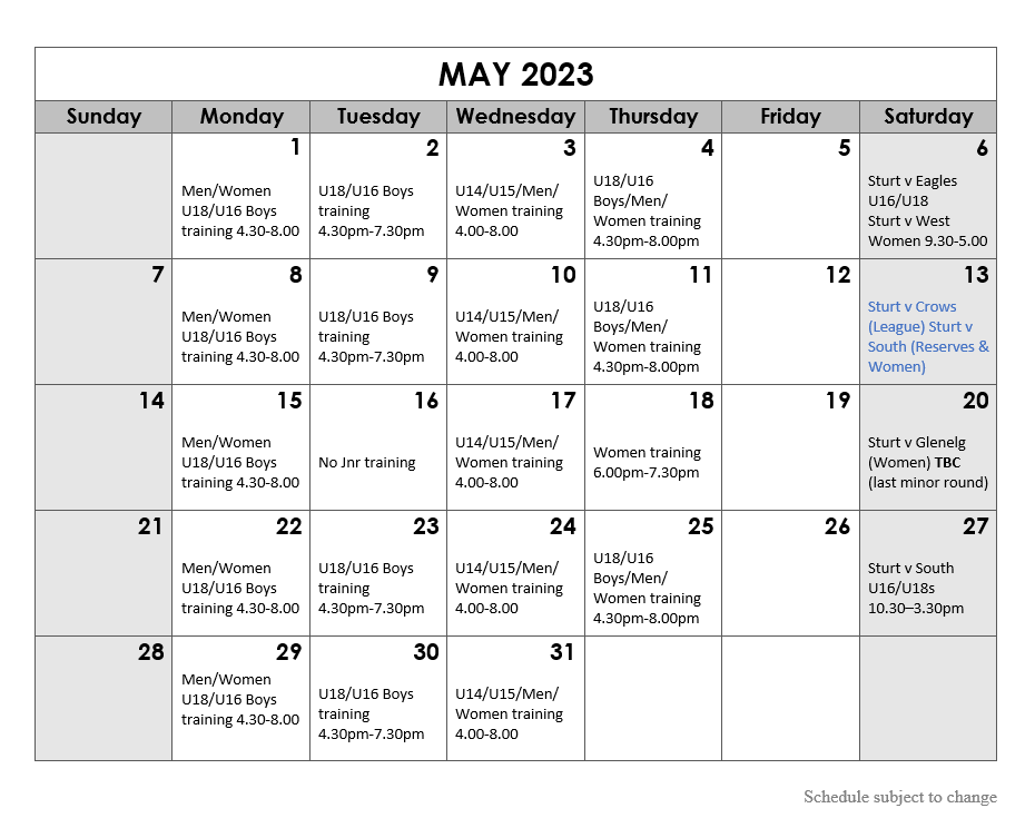 February 15, 2023 930 × 735 Unley Oval Training Schedule